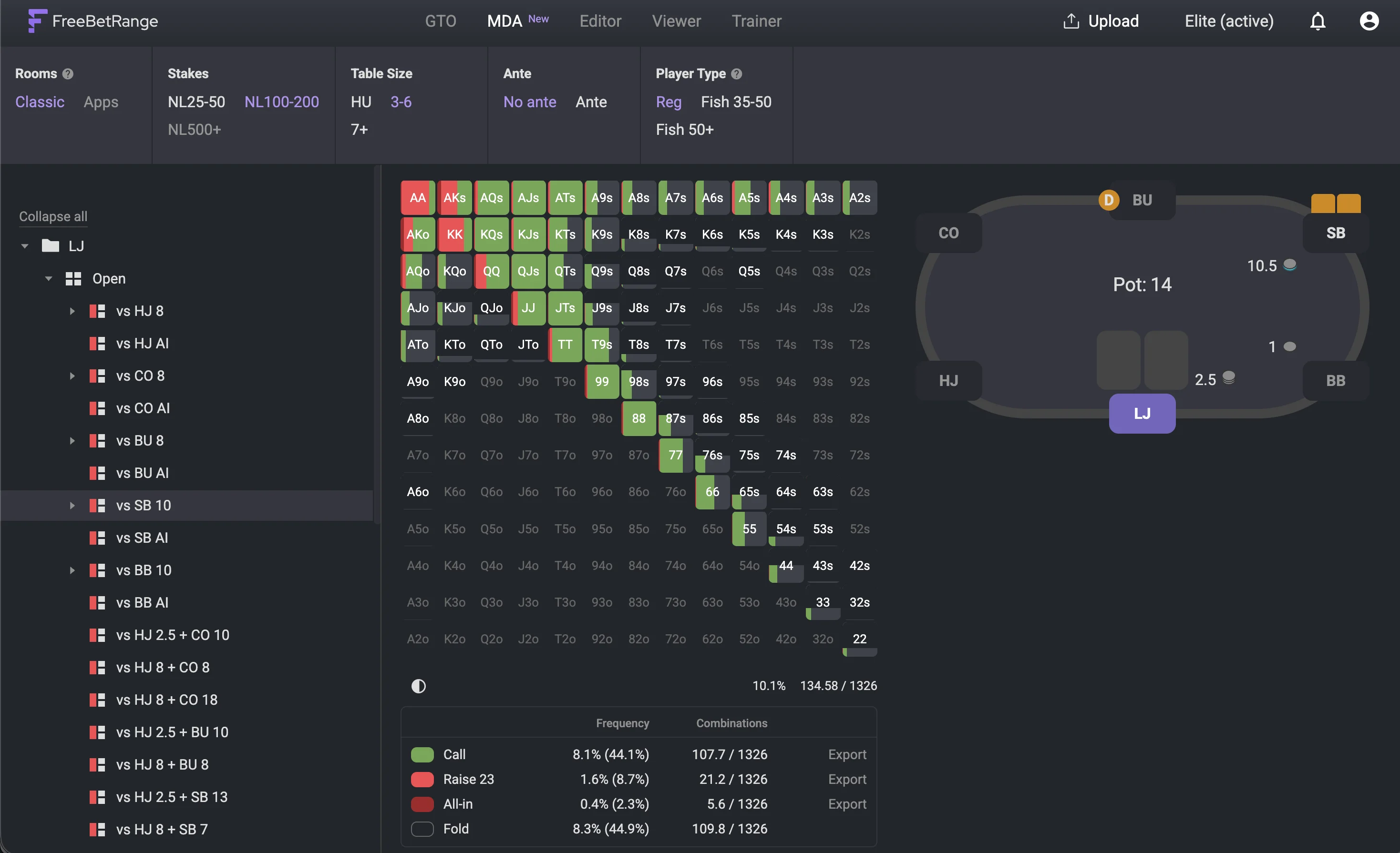 In 2026, Freebetrange team introduced the new MDA feature right inside Freebetrange app. Now you can explore the full preflop strategies of the main player archetypes (reg, fish) in just a few clicks - no need to build your own database. All the ranges are pre-calculated using a large dataset of Cash games hand histories (300+ million hands). And what's really great - you can see the actual ranges, not only showdown data.