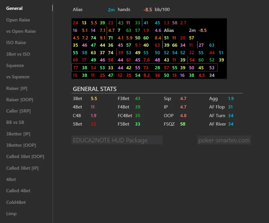 Based on Educa's HUD, now available for Hand2Note and customized with the best statistics.