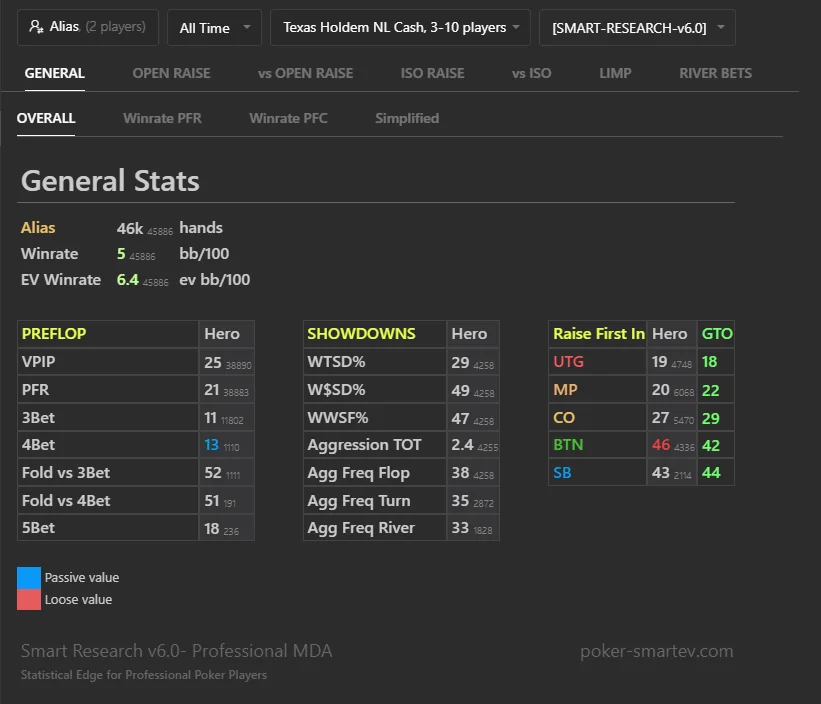 - All preflop and postflop lines