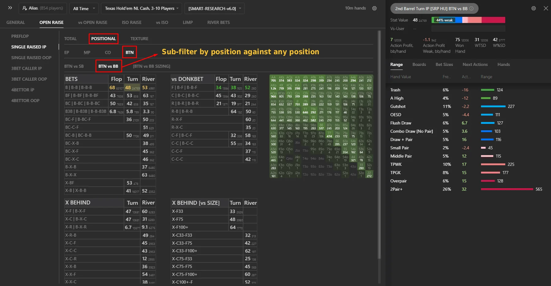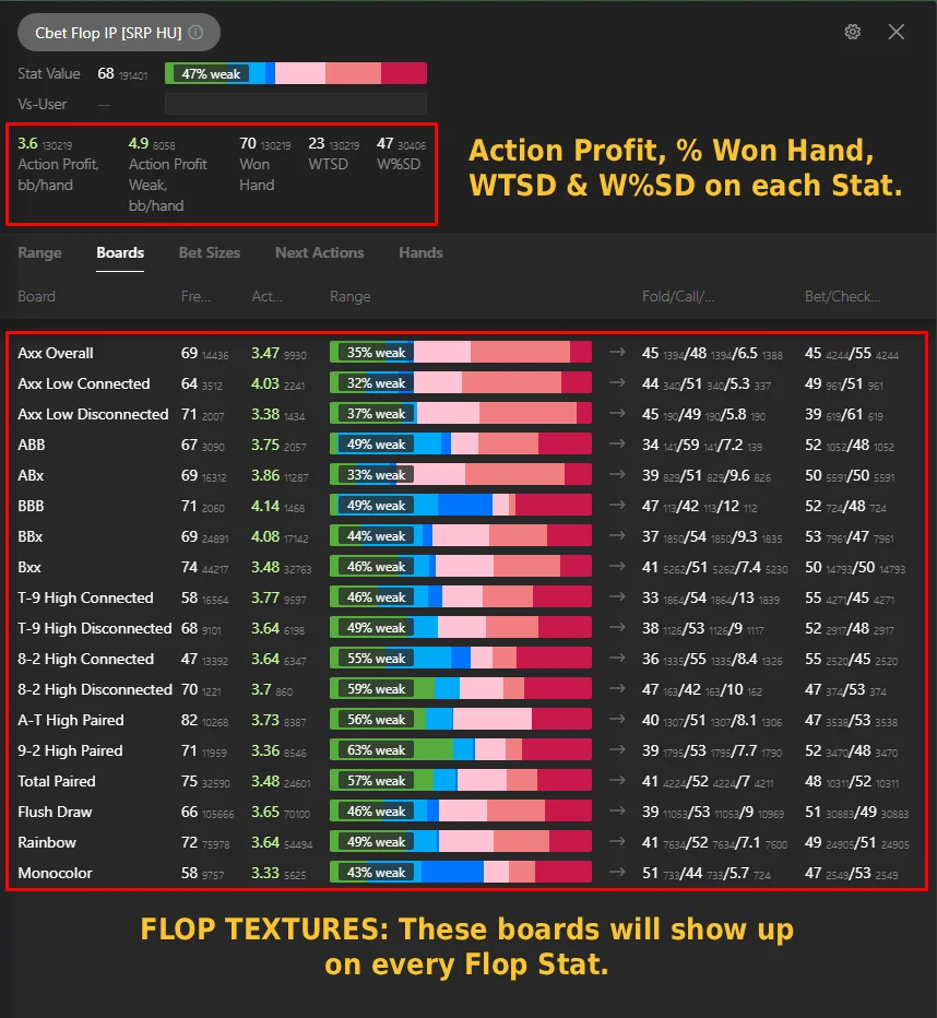 - All flop stats filtered by board texture